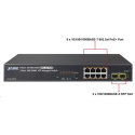 Popis Planet GS-4210-8P2S PoE+ switch 8x 10/100/1000Base-T, 2x SFP, 802.3at do 120W, VLAN, SNMP/WEB