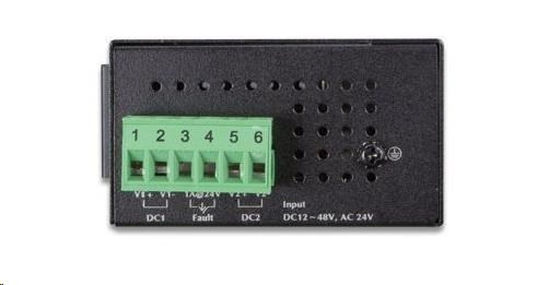 8portový 100Mbitový přepínač a konvertor pro průmyslové aplikace. Možnost redundantního napájení DC 12-48V / AC 24V, příkon <2,5W.