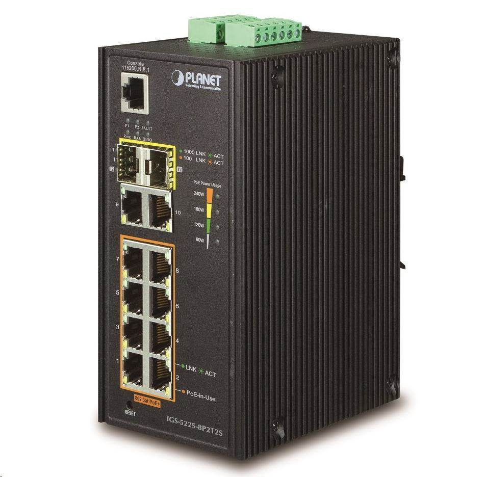 Porty: 8 x RJ-45 10/100/1000BASE-T PoE+, 2 x RJ-45 10/100/1000BASE-T, 2 x SFP 1000BASE-SX/BX, 1 x RJ-45 sériový port konzole