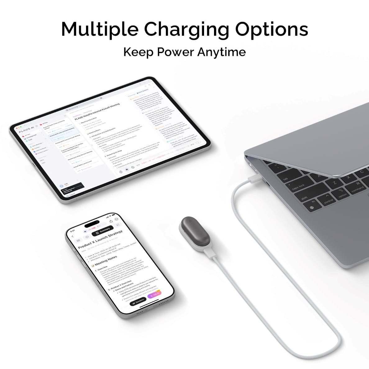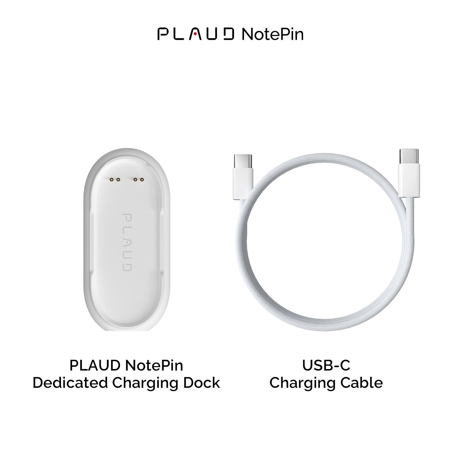 Sada pro Plaud Note Pin, obsahující náhradní nabíjecí kabel s USB-C konektorem a nabíjecí dock. Kompatibilní pouze s modelem Plaud Note Pin.