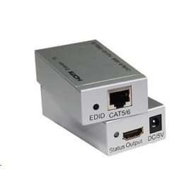 PremiumCord 4K HDMI extender na 60m přes jeden kabel Cat5e/Cat6 Zařízení umožňuje po jednom síťovém kabelu přenést HDMI signál v rozlišení 4K@30Hz nebo FULL HD 1080p až na 60m. - Podporuje rozlišení 4K@30Hz , FULL HD 1080p až na 60m - HDMI extender se skládá z vysílače TX a přijímače RX - Vstupní a výstupní konektory vysílače a přijímače: HDMI female - Propojovací konektory vysílače a přijímače: RJ45 female - Na propojení TX a RX se používá kvalitní 1x LAN kabel Cat5e,Cat6 nebo Cat7 ( na vzdálenost 60m použijte měděný kabel s vodiči AWG23 , například UTP Cat6 kabel v metráži kód:sutpd6c3 ) - 3x3,4 Gbps přenosová rychlost včetně podpory HDCP - Šířka pásna: 340MHz - Pro rozlišení: 480i,480p,576i,576p,720p,1080i, 1080p, 4K@30Hz - Extender přenáší HDMI digitální obraz a zvuk - Extender se nesmí zapojit do aktivní počítačové sítě,do switche, routeru nebo do jiného aktivní séťového zařízení. Vysílač a přijímač extenderu musí být přímo propojen LAN kabelem, nejlépe bez přerušení. - Vstupní a výstupní HDMI kabely mohou být dlouhé až 10m při AWG těchto kabelů AWG26 (AWG26 platí pro kabely délky 7m a 10m) - Vysílač a přijímač jsou napájeny z přiložených napájecích adaptérů 230V/5V, 1A - Jednotky obsahují praktické tlačítko EDID, po delším podržení tlačítka EDID se přepne rozlišení z FULL HD 1080p na 4K@30Hz a opačně - Vysílač a přijímač mají signalizační LED, která signalizují, kdy se jednotky spojily a probíhá přenos signálu. - LED dioda svítící modře signalizuje status napájení, při funkci se tato LED dioda rozbliká červeně a signalizuje aktivní HDMI signál. - Pracovní teplota: -15 až +55°C - Rozměry vysílače a přijímače:81mm x 47mm x 22mm - Váha vysílače:102g - Váha přijímače: 103g Balení obsahuje: 1x Jednotka vysílače 1x Jednotka přijímače 1x manuál 2x napájecí adaptér Pro propojení použijte nepřerušovaný přímý kabel Cat5e/Cat6 se silnými měděnými vodiči min. průřezu AWG24. Extendery se nesmí zapojovat do počítačové sítě ethernet..