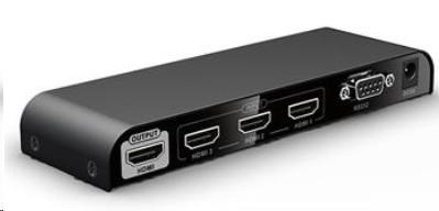 Popis PREMIUMCORD HDMI switch 4Kx2K@60Hz 3:1 kovový s dálkovým ovladačem a napájecím adaptérem