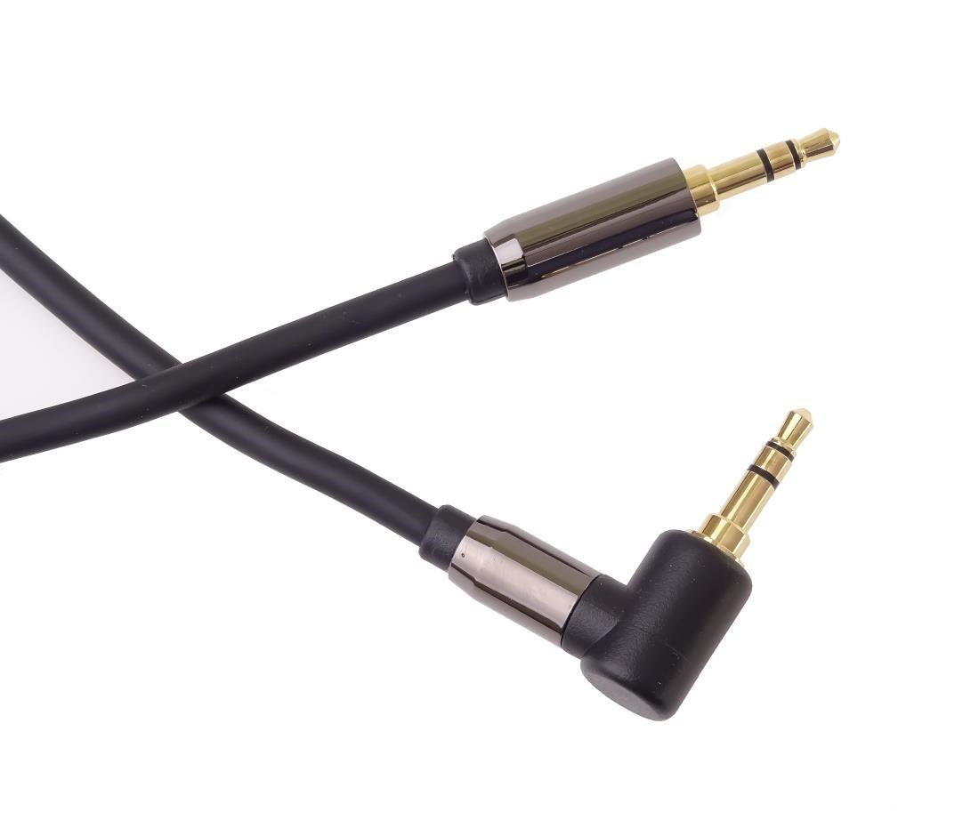 Popis PremiumCord HQ stíněný kabel stereo Jack 3.5mm - Jack 3.5mm zahnutý 90°, 1,5m
