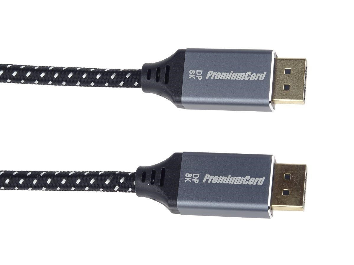 PremiumCord DisplayPort 1.4 přípojný kabel M/M pro rozlišení 8K, kovové krytky a zlacené konektory, 0,5m