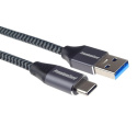 PremiumCord kabel USB-C - USB 3.0 A (USB 3.1 generation 1, 3A, 5Gbit/s) 0,5m bavlněný oplet a kovové hliníkové konektory