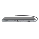 PREMIUMCORD Dokovací stanice USB-C 10v1, 1xHDMI, 1xVGA, 2xUSB-C, 3xUSB, 1xRJ45, čtečka SD karet, šedá