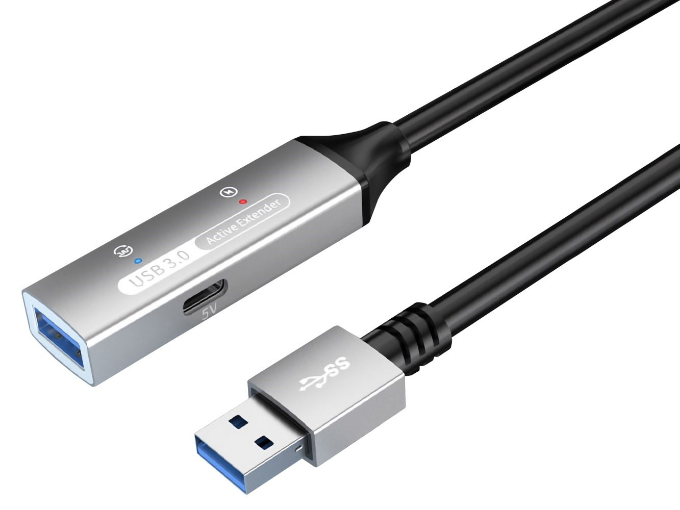 Kabel má aktivní zesilovač a je vhodný pro prodloužení USB3.0 a USB2.0 kabelu o dalších 5m . Standardní USB pasivní kabel je omezen délkou maximálně 5m. Pomocí tohoto aktivního kabelu je možné prodloužit délku o 5m.