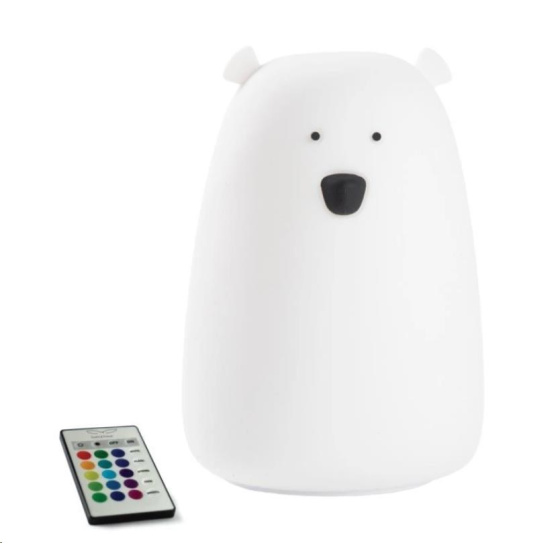 je vyrobená z příjemného a měkkého silikonu. Díky možnému výběru ze tří barevných provedení je skvělou volbou jak do holčičího, tak klučičího pokojíčku. Tento roztomilý kamarád bude svým příjemným světlem dělat vašim dětem společnost při večerním usínání, ale klidně i chvíli po něm. V případě, že medvídka zapomenete vypnout, sám se po 2 hodinách svícení automaticky vypne. Děti si svítícího medvídka natolik oblíbí, že jej bude chtít brát s sebou i na dovolenou či víkendový pobyt. Lampička je určena ke svícení, není hračkou.