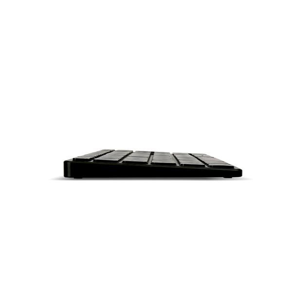 Tato ultratenká klávesnice spojuje prvotřídní materiály s elegantní konstrukcí a pohodlím nezkrácené klávesnice. Díky pevné hliníkové základně je tělo klávesnice odolné a pevné. Zároveň dodá každému pracovnímu místu stylový punc. Klávesnice E9800M je nejen vyspělá konstrukcí, ale také funkcionalitou. Nabízí vícerežimovou technologii připojení firmy Rapoo – prostřednictvím spolehlivého bezdrátového vysílače 2,4 GHz, Bluetooth 3.0 a 5.0 – umožňuje současné připojení a přepnutí několika zařízení (s automatickým párováním). Kromě toho je klávesnice vybavena multimediálními klávesami a ekologicky šetrným dobíjecím akumulátorem tak, abyste si mohli plně vychutnat volnost bez kabelů.