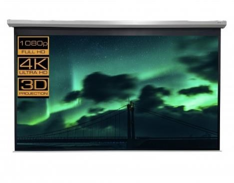 RC motorové plátno MOTOR CrystalLine 350x295cm, viditelná plocha 4:3, 167"/425, 340x255cm, bílý hranatý kovový tubus 15x365cm/40kg, uchycení na stěnu nebo strop, materiál BetaLux - bílá 0,52 tkanina 600g/m2 s 5cm černým okrajem a zadní stranou, Gain=1,0, pozorovací úhel 150°. Lux - bílý matný povrch pro maximálně věrný a kontrastní obraz při alespoň částečném zatemnění. PVC materiál s textilním základem vytváří rovnou plochu bez zvlnění ale v krajích může docházet k prohnutí - postupně mizí. Snadné uchycení na bocích plátna - stěna nebo strop. Přívodní elektrický kabel je na levé straně tubusu (při pohledu na upevněné plátno). Součástí dodávky je RC dálkový ovladač. Krabička RC přijímače (lze připevnit na stěnu) je na přívodním síťovém kabelu a na jejím boku jsou další možná tlačítka pro ovládání plátna..