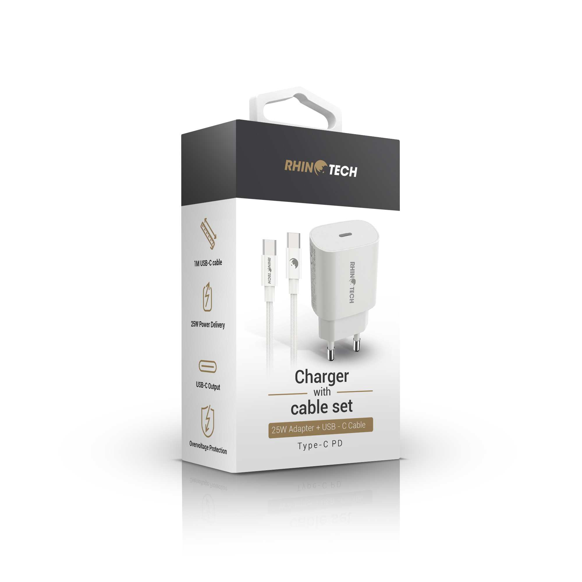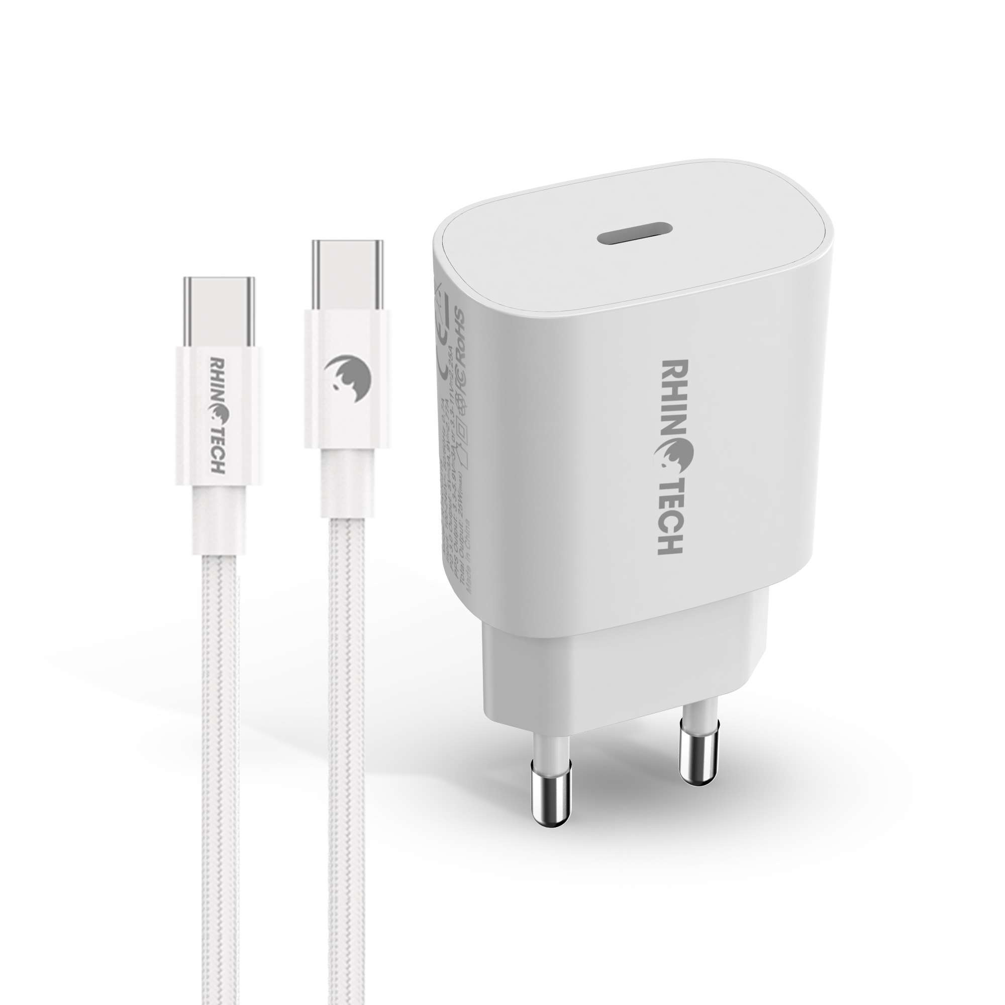 RhinoTech 25W PD nabíjecí adaptér s kabelem USB-C na USB-C 60W 1M bílá