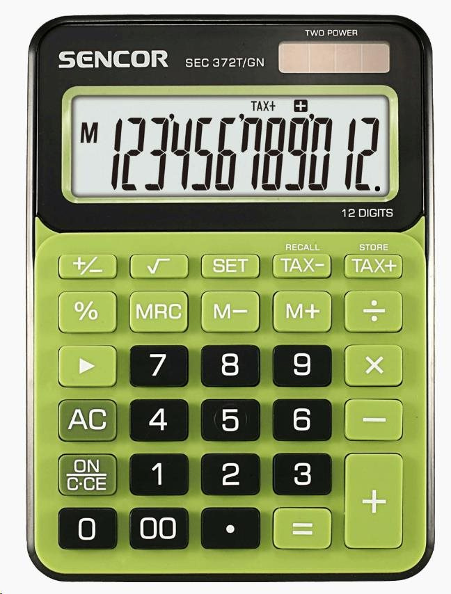Stolní kalkulátor 12-ti místný displej Výpočty s DPH Korekční tlačítko Výpočet marže Výpočet odmocniny Výpočet procent Nezávislá paměť Duální napájení Automatické vypnutí Rozměry: 104x149x22mm (šxvxh) Hmotnost: 120 g barevné provedení : zeleno černé EAN 8590669162970.