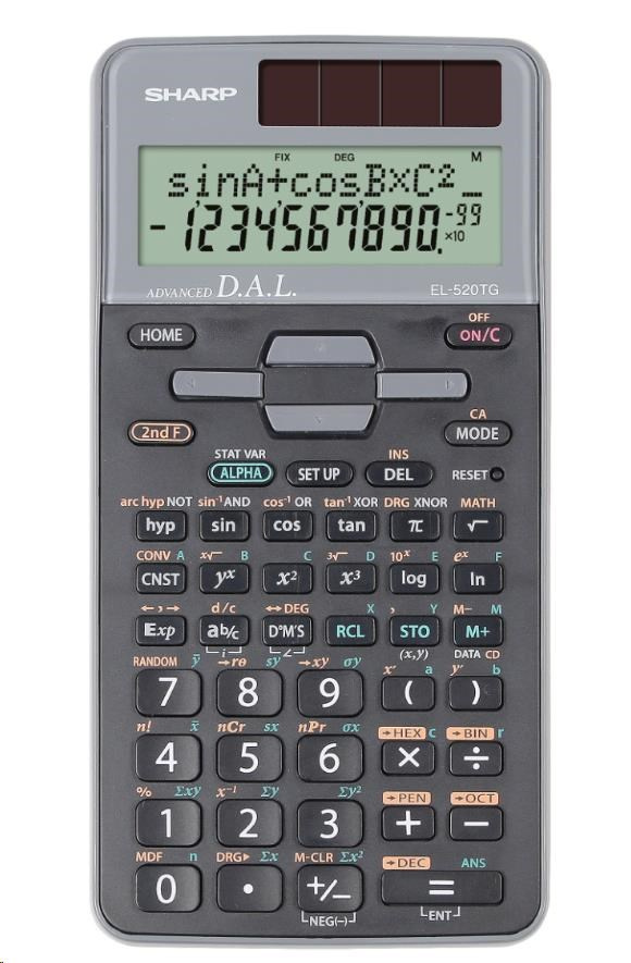 Popis SHARP kalkulačka - EL-520TG - školní, duální napájení