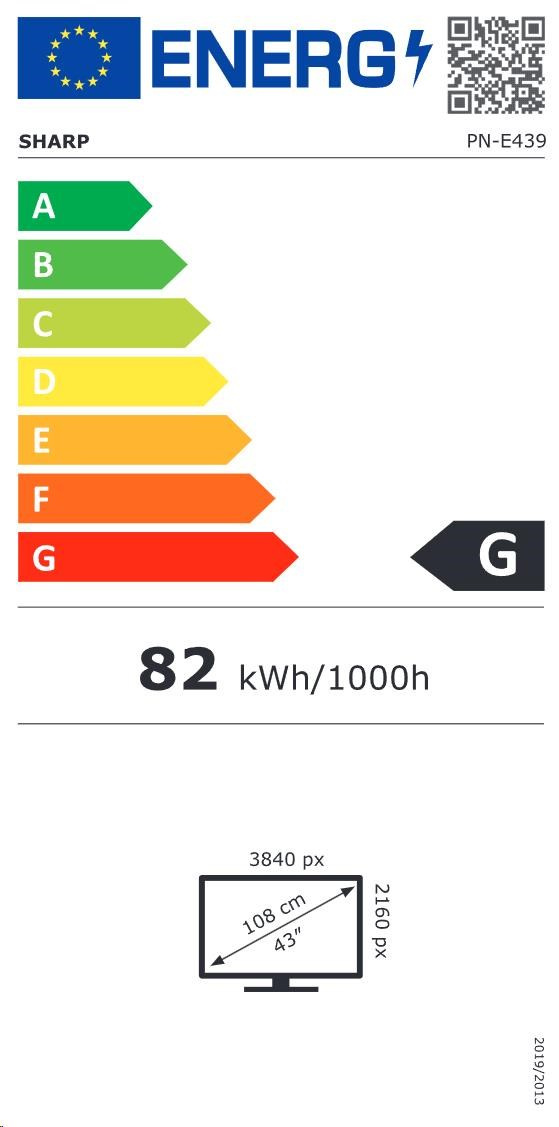 LED backlight; Spotřeba energie: 82 kWh/1000 provozních hodin; Třída energetické účinnosti: G