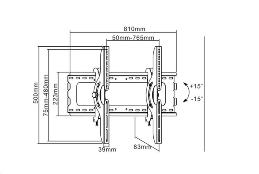 Robustní nástěnný držák na televize 50-90", možnost naklápění +/-15°, vzdálenost Tv od zdi 83mm, pojistka proti vysazení, VESA 100x100 až 760x480, nosnost 75kg.Více