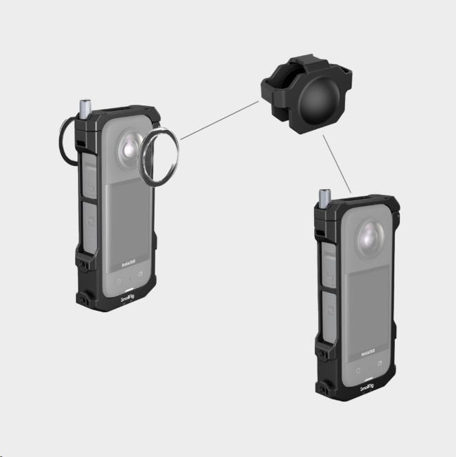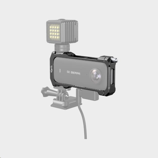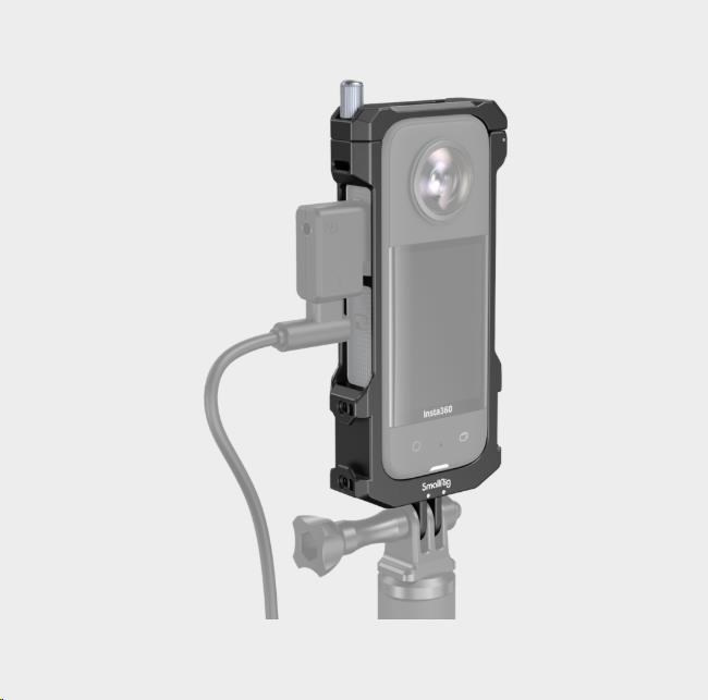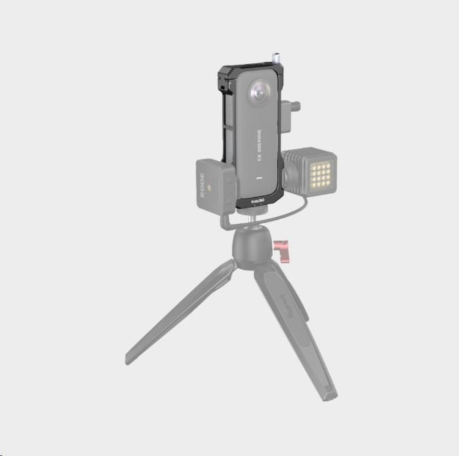 Tvarovaný rám obsahuje silikonové polštářky, zabraňující poškrábání. Pomocí šroubu bezpečně uzamkne kameru, která je vložena do rámu přímo z jeho horní části.