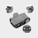 Na spodní straně je integrovaná rychloupínací destička Arca-Swiss pro gimbaly DJI RS 2 / RSC 2 / RS 3 / RS 3 Pro nebo stativy typu Arca pro rychlé přepínání mezi režimem ruční kamery, gimbalu a stativu a také držák QD pro rychloupínací přezku ramenního popruhu.