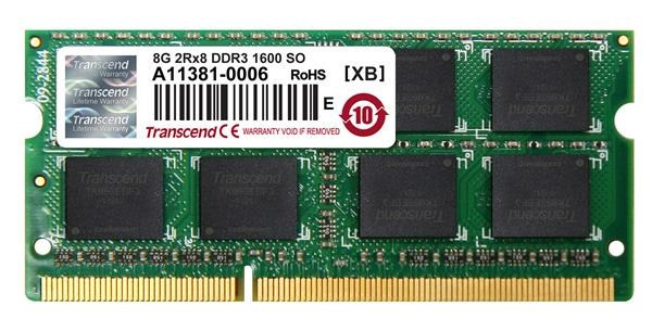 Popis TRANSCEND SODIMM DDR3 8GB 1600MHz 512Mx8 CL11 JetRam™ Retail