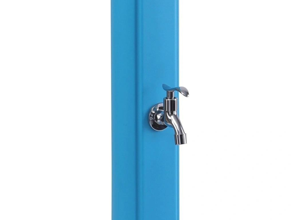 Designová solární sprcha v modré barvě, která osvěží každou zahradu. Sprcha je vyrobena z kvalitního PVC odolného vůči UV záření, má zásobník o objemu 25 l a výšku 215 cm. Je vybavena praktickým kohoutkem na oplach nohou. Sprcha vyniká svým minimalistickým provedením. Připojení na přívod vody je velmi jednoduché pomocí hadicové rychlospojky (součástí balení).
