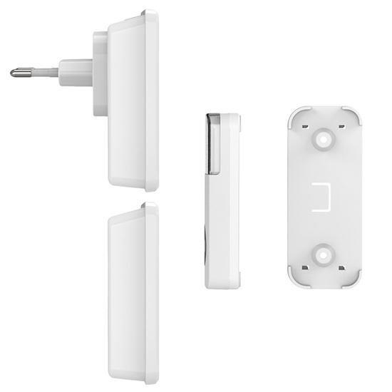 Sada 2x přijímač, 1x tlačítko, jeden zvonek zapojený do zásuvky a druhý přenosný na baterie. Využití v domácnostech - např. v zásuvce doma a přenosný na zahradu, využití v komerčních prostorách - např. v zásuvce v kanceláři a přenosný do skladu, funkce „Learning code“ umožňuje spárování více zvonků nebo tlačítek do jedné skupiny:k jednomu zvonku může být spárováno max. 15 tlačítek.Více