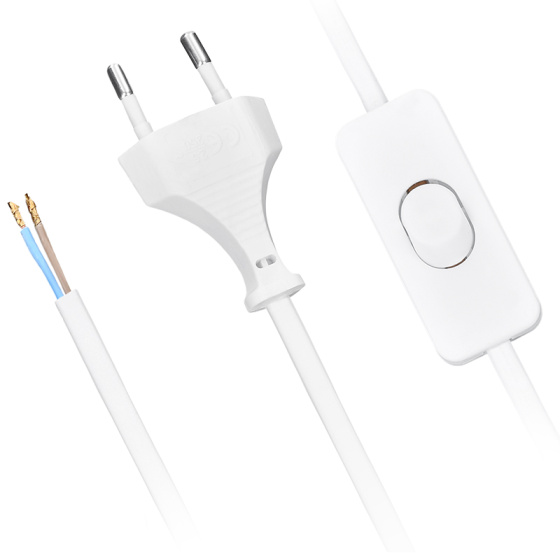 Průřez vodičů: 2 x 0,75mm2, typ kabelu: H03VV-F2, plochá vidlice, s vypínačem, barva: bílá.