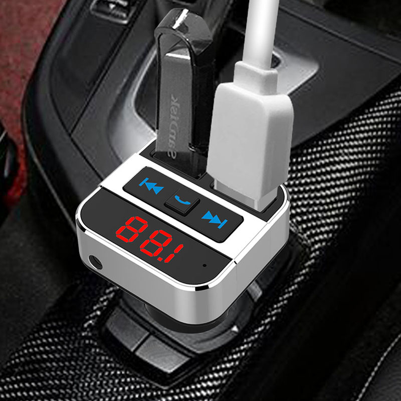 bluetooth FM transmitter pro přehrání hudby z multimediálních zařízení, mp3 přehrávač, autonabíječka + handsfree