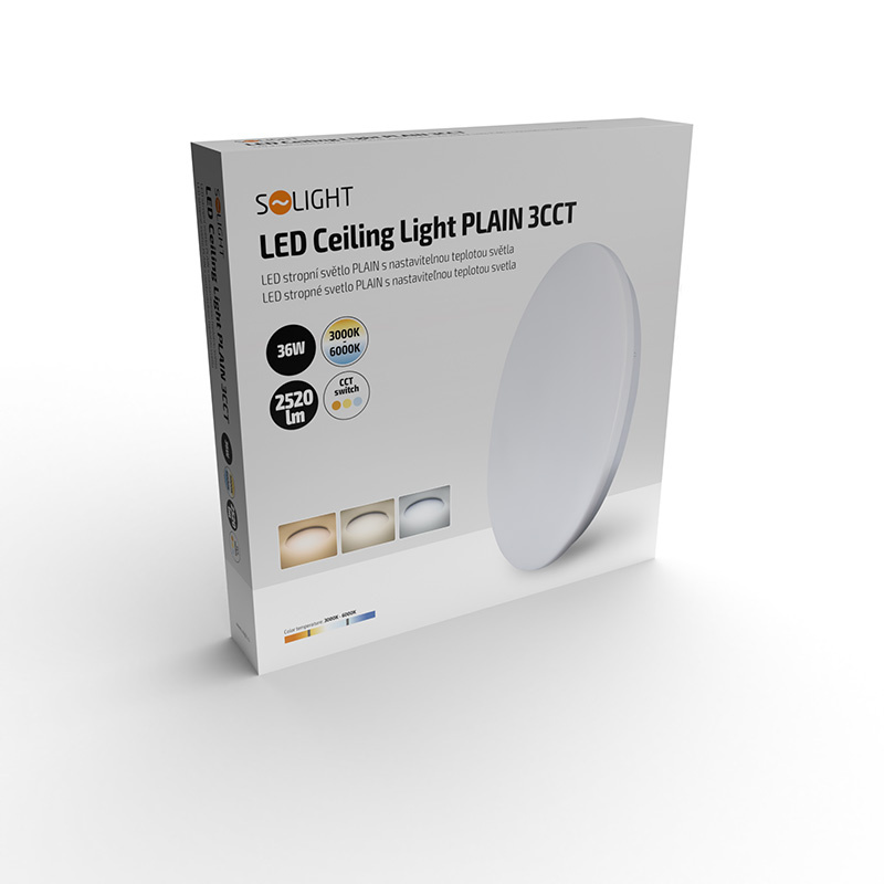 LED svítidlo disponuje speciálním LED zdrojem s přepínačem, který umožňuje předem nastavit teplotu světla (chromatičnosti) 3000K, 4000K nebo 6000K. příkon: 36W, světelný tok: 2520lm, teplota chromatičnosti: 3000K, 4000K, 6000K (teplá, neutrální, studená bílá), pro instalaci na stěnu nebo strop, životnost LED: 25.000 hodin.Více