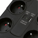 Přepěťová ochrana s USB nabíječkou a 8 zásuvkami