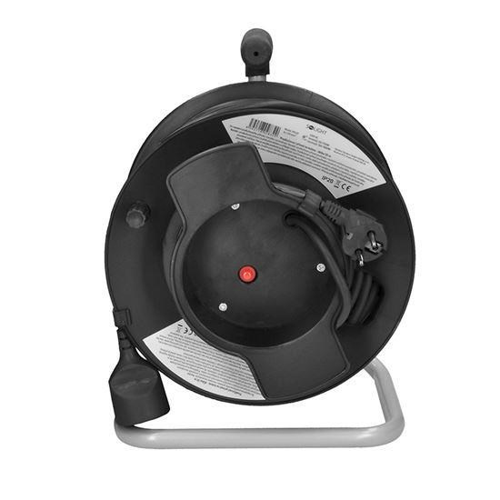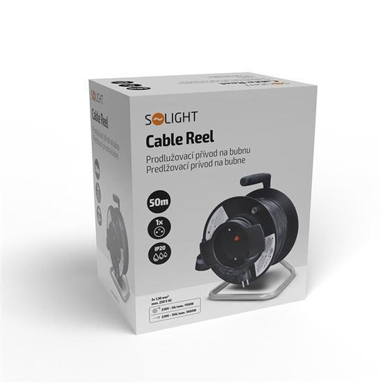 Popis Solight prodlužovací přívod na bubnu, 1 zásuvka, 50m, černý kabel, 3x 1,5mm2