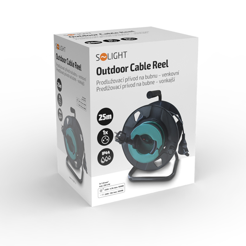 Gumový kabel s vodiči o průřezu 3×1,5 mm2 je vhodný pro venkovní použití i vnitřní prostory. Buben je vybaven zásuvkou s dětskými pojistkami a tepelnou pojistkou, která zajišťuje bezpečnost při přetížení nebo neúplném odvinutí kabelu. Produkt splňuje stupeň krytí IP44, který zajišťuje ochranu proti stříkající vodě.