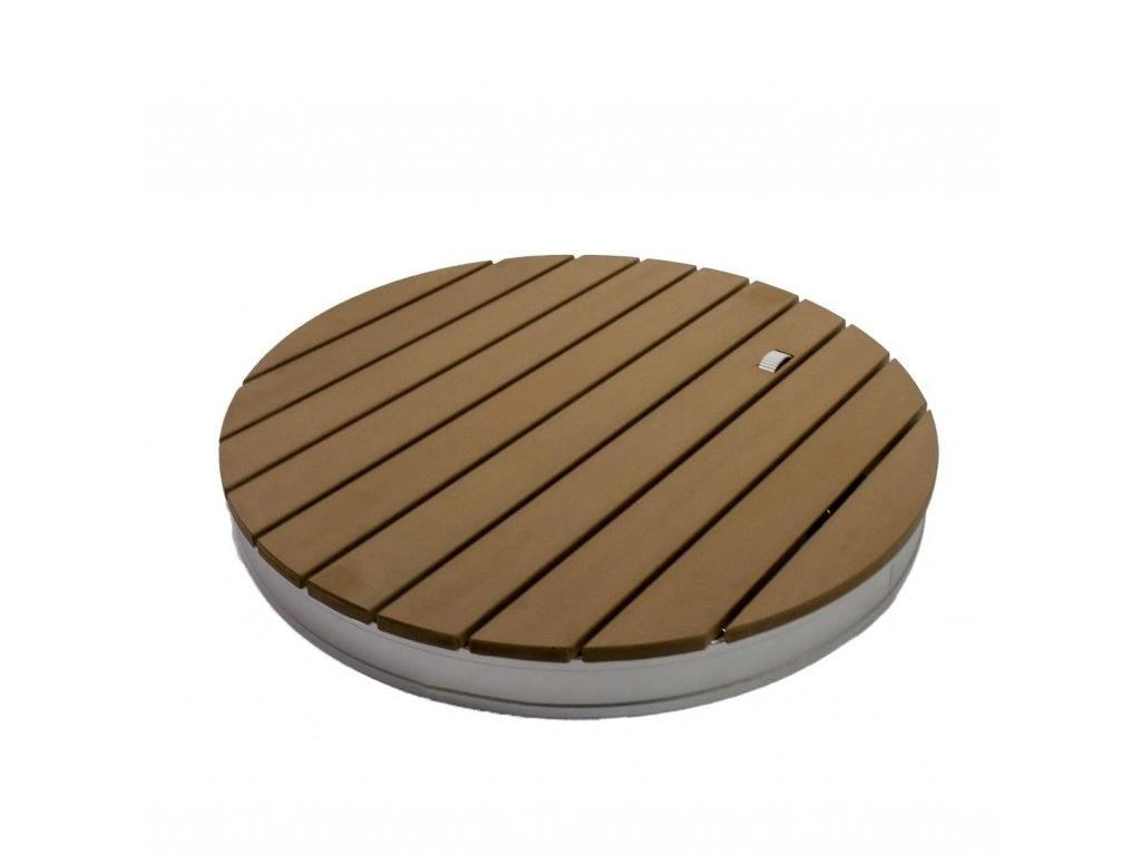 Sprcha má průměr 70 cm a je vyrobena z kvalitního WPC v designu teakového dřeva. Váha sprchy je 7 kg. Ze spodní strany má sprcha praktické madlo a lze ji tak snadno přenést kamkoliv v zahradě. Připojení sprchy na přívod vody je velmi jednoduché pomocí hadicové rychlospojky, která je součástí balení.