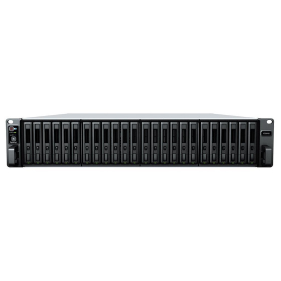 24šachtové zařízení Synology FlashStation FS3410 v pouzdru 2U pro montáž do rackových skříní je ideální pro malé a střední podniky, podnikové kanceláře a datová centra vyžadující stálý vysoký výkon vstupů/výstupů v aplikacích, jako je postprodukce videa, virtuální počítače (VM), podnikové e-mailové servery a online zpracování transakcí.