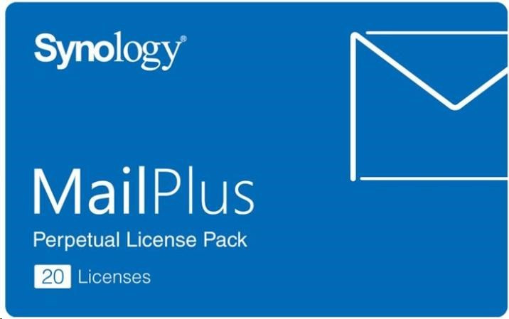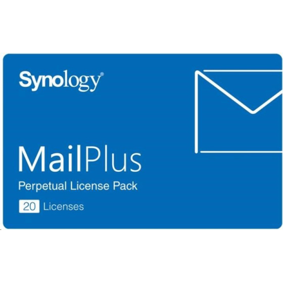 Licenční balíčky pro službu Synology MailPlus jsou určeny k přidávání aktivních e-mailových účtů do služby Synology MailPlus. Podle výchozího nastavení je na zařízení Synology NAS s podporou služby MailPlus nainstalováno 20 licencí a podle potřeb firmy lze zakoupit další licence na další e-mailové účty.