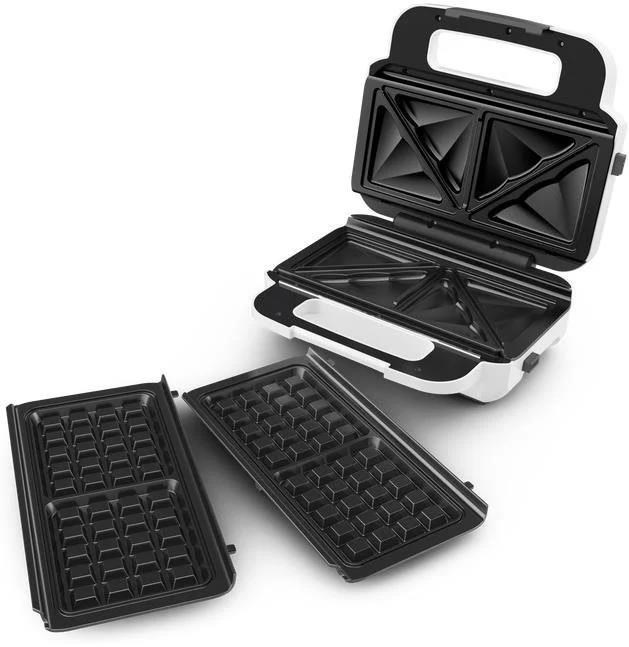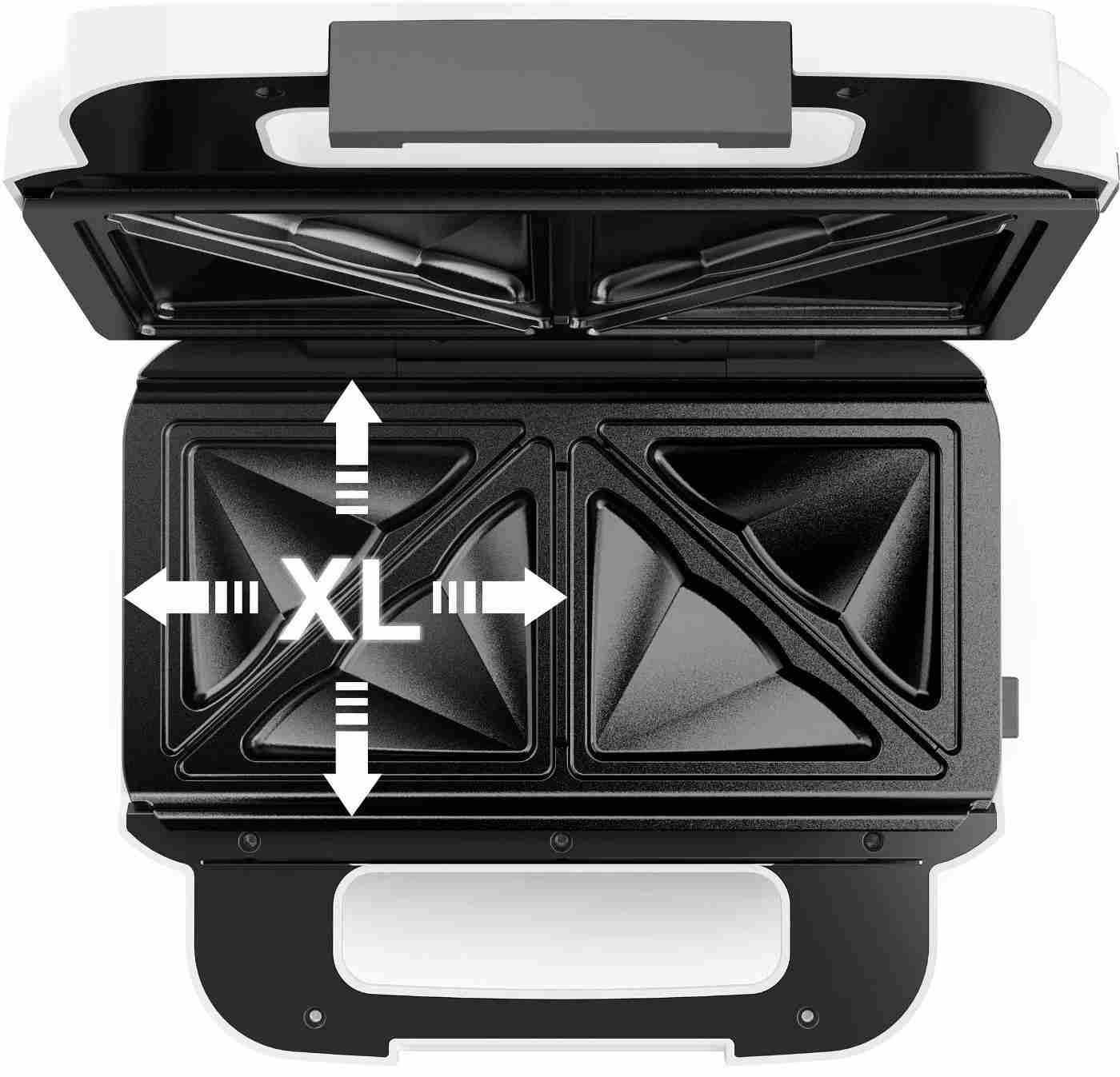 Toustovač s příkonem 850 W, materiál pláště plast a nerez, indikátor připravenosti k použití, XL vyměnitelné plotny s nepřilnavým povrchem, plotny na trojúhelníkové tousty a vafle, vyměnitelné části vhodné do myčky, izolovaná rukojeť s bezpečnostní západkou, systém uložení šňůry, barva bílá a nerez.Více