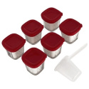 Součástí balení je 6 nádob po 140 ml s víčkem a sítkem a také podnos s uchy, který lze použít k uložení 6 sklenic pro snadnou přepravu v chladničce. Lze mýt v myčce nádobí a 100% neobsahuje BPA
