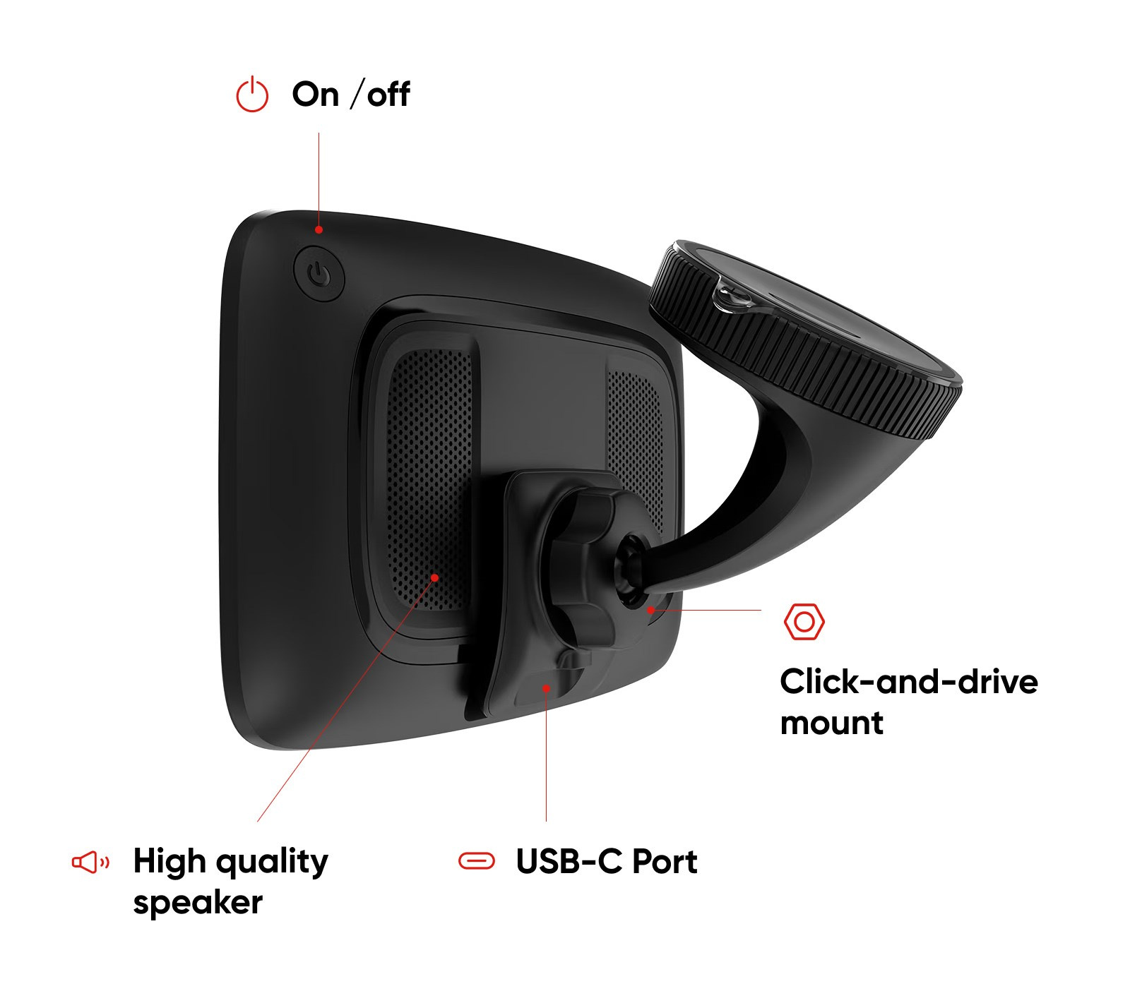 Vložení a vyjmutí navigačního zařízení je rychlé a snadné – zvládnete to i jednou rukou. Napájecí kabel vede přímo do držáku, takže stačí navigační zařízení umístit do držáku a po příjezdu ho vyjmout.