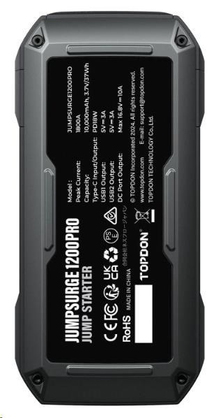Popis TOPDON Car Jump Starter JumpSurge 1200 PRO, 10000 mAh