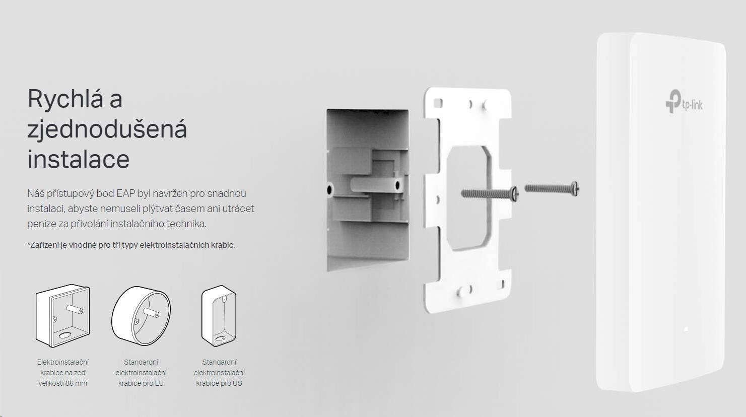 | Package Contents | • 5x AX1800 Wall Plate WiFi 6 Access Point EAP615-Wall • Installation Guide • 5x Mounting Kits |