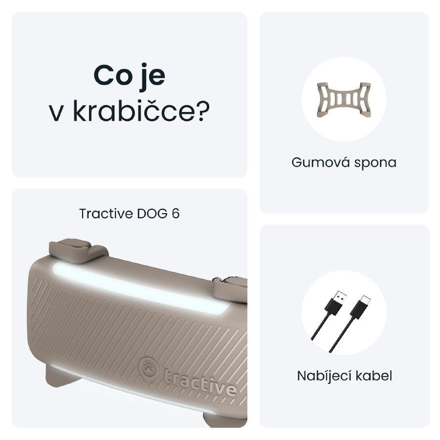 Tractive GPS tracker pro psy Systém uchycení na obojek Nabíjecí kabel Dokumentace