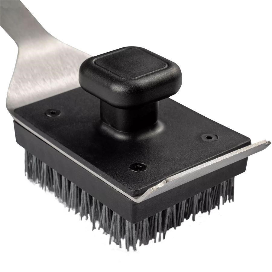 Představujeme bezpečnější způsob čištění vychladlých roštů grilu. Naše čisticí kartáče Traeger BBQ mají nylonové štětiny, které nepoškodí rošty ani se nedostanou do hamburgerů.