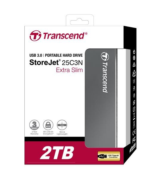 Popis TRANSCEND externí HDD USB 3.0 StoreJet 25C3N, 2TB, Ultra Slim