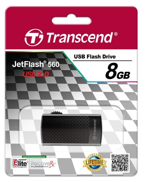 Popis TRANSCEND Flash Disk 8GB JetFlash®560, USB 2.0 (R:18/W:4 MB/s) černá/stříbná