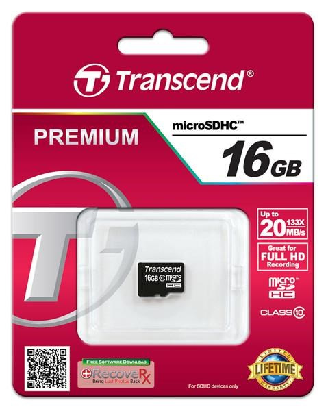 Popis TRANSCEND MicroSDHC karta 16GB Class 10, bez adaptéru