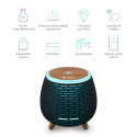 Aroma difuzér a zvlhčovač, pro použití esenciálních olejů, ultrazvuková technologie, eliminace zápachu, kapacita 140 ml, 7 barev LED podsvícení, výdrž až 17 hodin, horní plnění, nízká hlučnost, automatické vypnutí při nedostatku vody, manuální ovládání dvěmi tlačítky, nastavitelná intenzita páry (volbou režimů), jedinečný design.Více