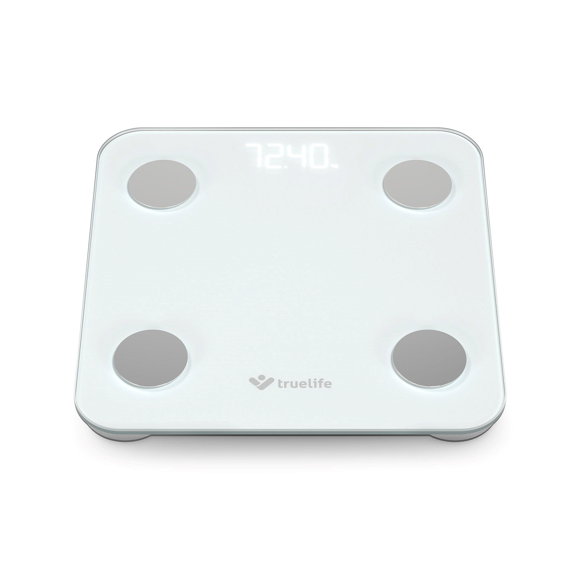 Odhalte tajemství svého těla s chytrou váhou TrueLife FitScale W1 BT, která se vám stane i koučem na cestě za lepší kondicí. Pomocí bioelektrické impedance měří váha celkovou tělesnou kompozici a po propojení s aplikací Fitdays prostřednictvím Bluetooth vytvoří kompletní a přehledný report o vašem zdravotním stavu. Základní hodnoty však vidíte i bez užití aplikace ihned na přehledném LCD displeji. Váha umí sledovat až 24 uživatelů a její prémiové krycí sklo s protiskluzovou úpravou unese až 180 kg. Vážení probíhá s velkou přesností, odchylka činí pouze 0,1 kg, a hmotnost lze zobrazit v kg či lb. Váha se zapíná i vypíná automaticky, stačí se tedy na ní jen postavit a sledovat své výsledky.