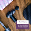 Masážní pistole váží jen 440 g a pro svůj kompaktní design ji snadno vezmete na cesty, do kabelky či do fitka. K tomu je určený praktický pytlík, který najdete součástí balení.