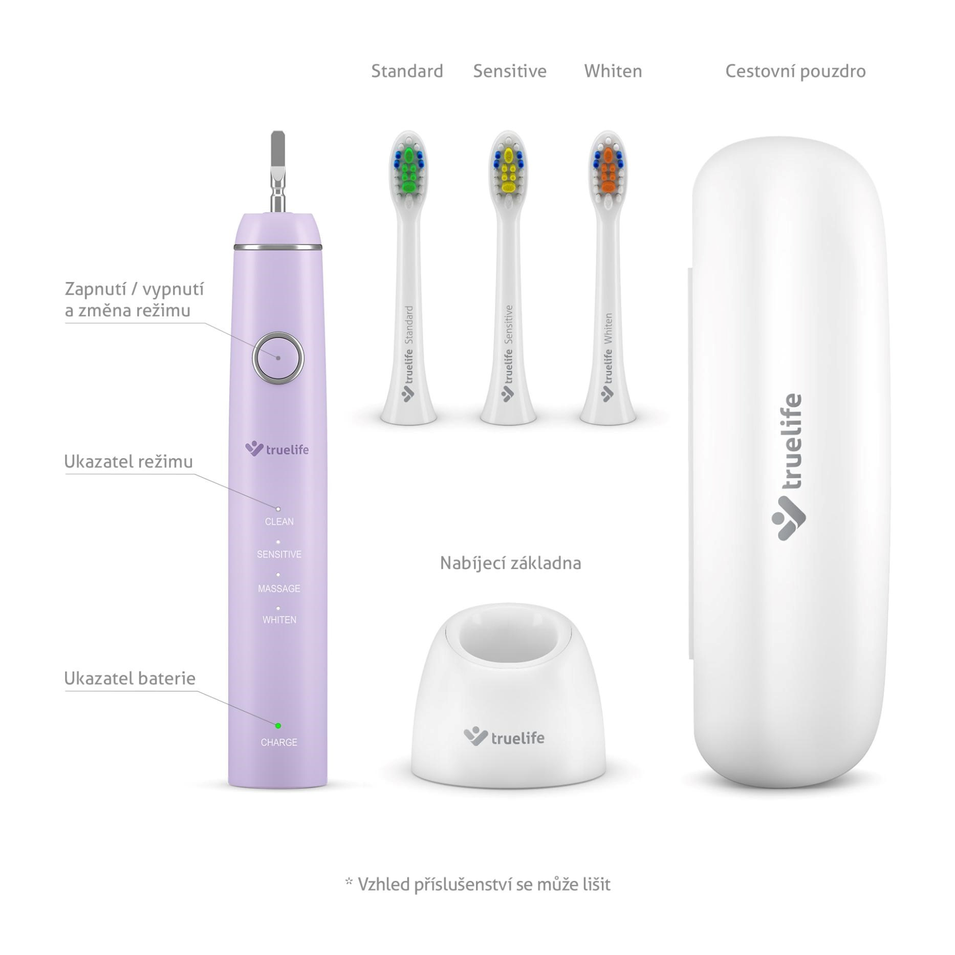 Dopřejte si každodenní rituál ústní hygieny v nové, elegantní barevné variantě Lavender. Stejně jako ostatní modely řady SonicBrush Compact, i tato varianta využívá sonickou technologii SonicTrue® pro důkladné a šetrné čištění zubů. Svěží levandulový odstín dodá vaší koupelně styl a zpříjemní vaši rutinu. Kartáček nabídne až 70?000 pohybů za minutu, čtyři režimy čištění a výdrž baterie až 30 dní. Díky kompaktnímu designu a cestovnímu pouzdru se stane vaším každodenním spojencem doma i na cestách. Součástí balení jsou také tři náhradní hlavice (Sensitive, Standard, Whiten) a cestovní pouzdro.