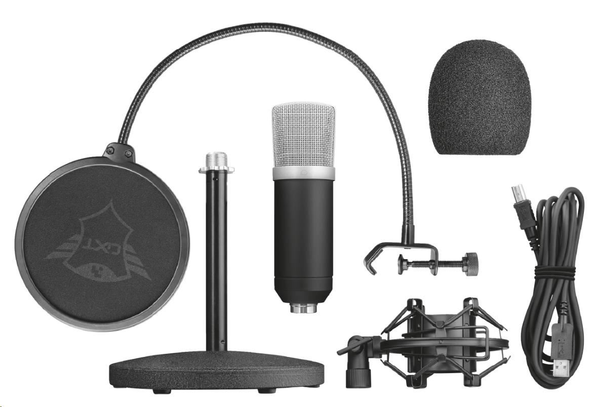 | Package contents | Flightcase Microphone USB cable Pop filters Shock mount Desk stand User guide |