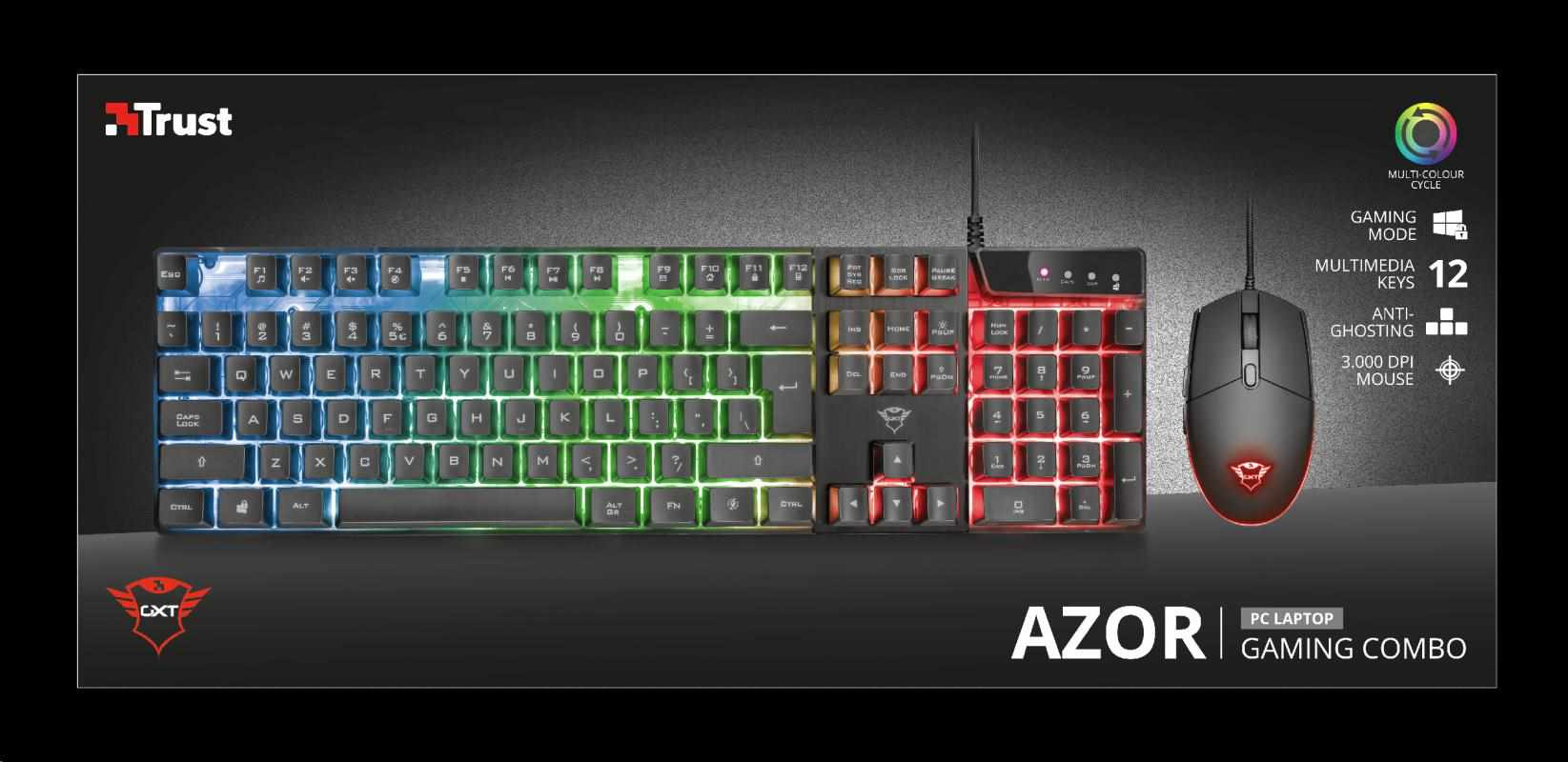 TRUST set klávesnice + myš GXT 838 Azor Gaming Combo CZ/SK