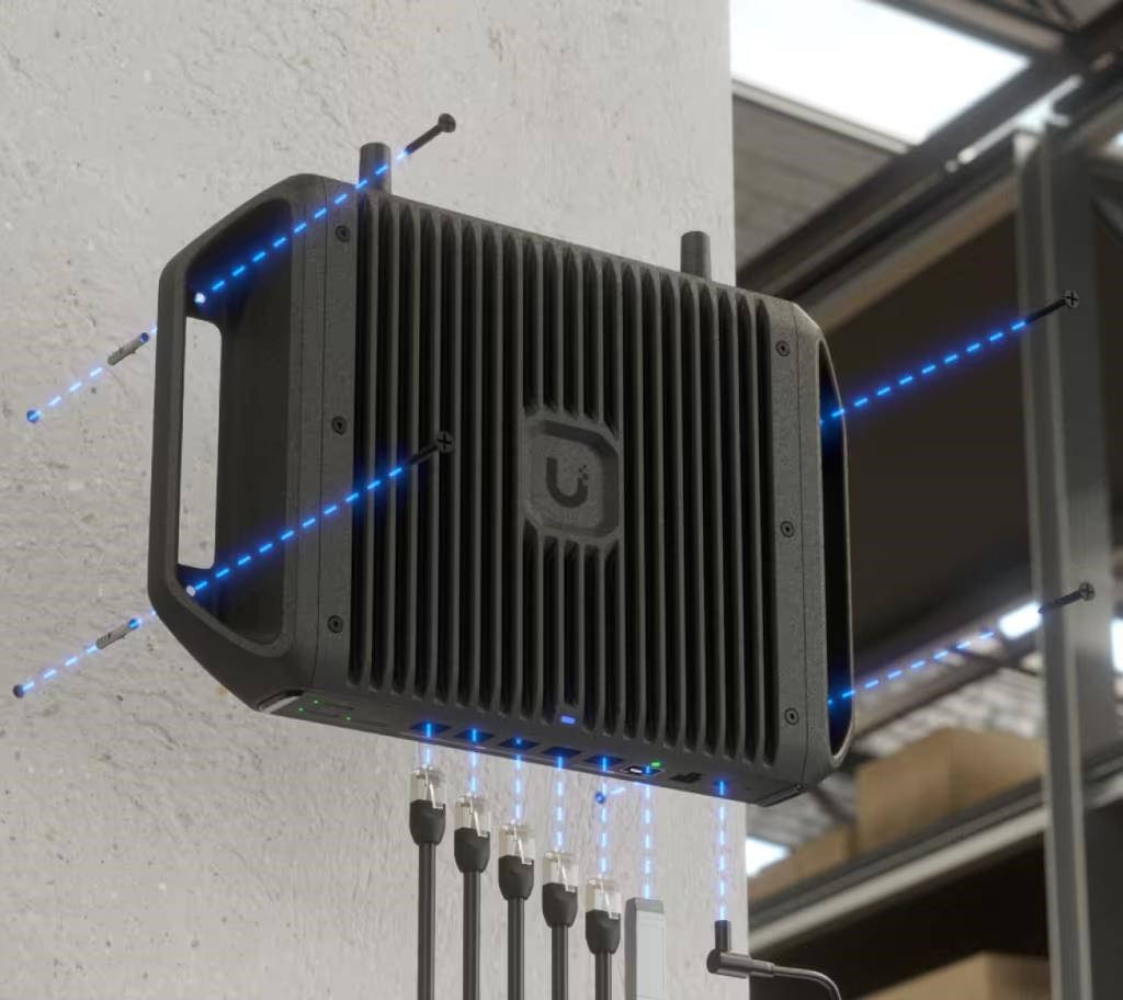 Ruggedized, fanless 10 GbE UniFi Cloud Gateway delivering 350W of total system power for high-densit